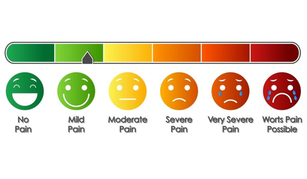 Por ejemplo en población infantil puede funcionar mejor una escala con pictogramas o emoticonos de caras que sea más entendible y que ellos estén más acostumbrados a ver que una escala numérica, si están en una edad que no saben los números. Con población adulta, la escala numérica puede ser la más empleada, aunque la escala de colores del verde al rojo, si utilizamos solo esos tres colores del semáforo, nos puede ayudar a determinar muy bien en que nivel de dolor está nuestro paciente, en casos que nosotros veamos que no es un dolor muy específico y que a nivel numérico puede inducirnos en un error de percepción.